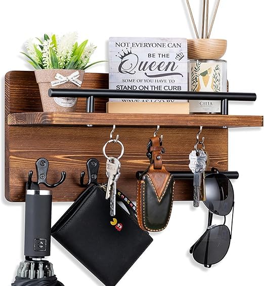 - حل تخزين المفاتيح المنظم: استخدم حامل المفاتيح هذا للحفاظ على مفاتيحك آمنة ويسهل الوصول إليها، مما يساعد على تقليل الفوضى والفوضى في منزلك بفضل تصميمه الريفي الصناعي ورف البريد المريح