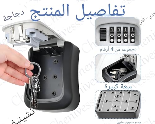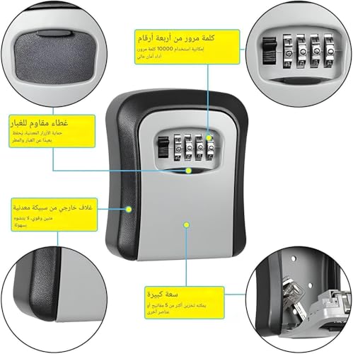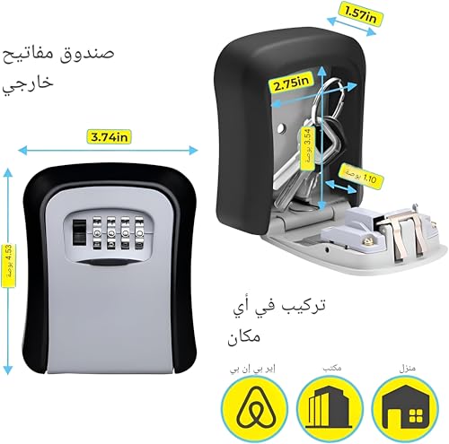 - تتميز خزنة المفاتيح هذه برمز رقمي مكون من 4 أرقام، مما يوفر طريقة آمنة لتخزين مفاتيحك. يسمح تصميمه بسهولة الوصول مع ضمان أن الأشخاص الذين لديهم الرمز فقط يمكنهم استرداد المفاتيح، مما يعزز أمان منزلك.