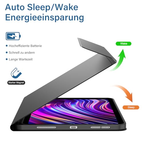 - يدعم خاصية التنبيه/السكون التلقائي ومزود ببطارية قوية: افتح أو أغلق غطاء الجراب المزود بلوحة المفاتيح الخاص بك، وسيعمل جهاز ايباد برو 11 تلقائيًا أو يدخل في وضع السكون، وهي ميزة سهلة الاستخدام وموفرة للطاقة. تدعم البطارية القوية 90 س من الاستخدام بساعتين من الشحن فقط.