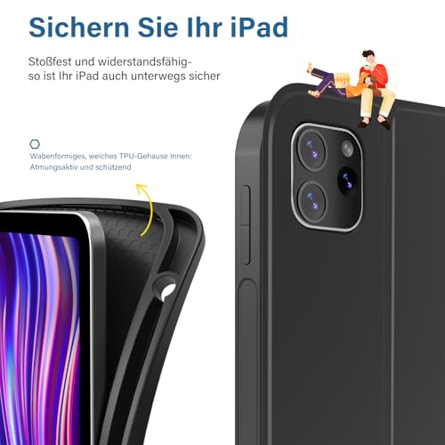 aMZCaSE - جراب بكيبورد بلوتوث قابل للإزالة (اللغة العربية غير مضمونة) وحامل قلم لجهاز ايباد اير جيل الخامس والرابع 10.9 بوصة 2022/2020، ايباد برو 11 بوصة 2022/2021/2020/2018، وايباد 11 بوصة جيل 1/2/3