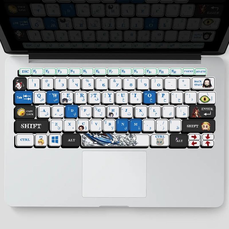 - مقاس مثالي: ستيكرات لوحة المفاتيح مقصوصة بدقة مصممة خصيصًا لتخطيطات لوحة مفاتيح أجهزة الكمبيوتر المحمول القياسية لضمان تغطية دقيقة للمفاتيح.