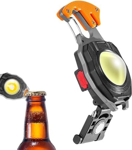 Generic - كشاف يدوي لسلسلة مفاتيح للتخييم بإضاءة ليد مع ولاعة، أداة للاستعمال كصفارة ومفك وفتاحة زجاجات، بقاعدة مغناطيسية، ضوء طوارئ محمول للمشي لمسافات طويلة في الهواء الطلق - 10×1