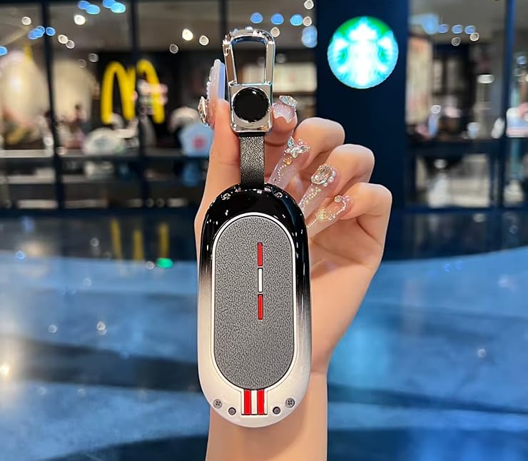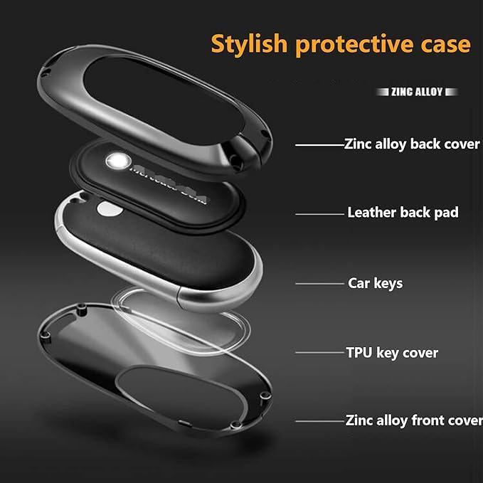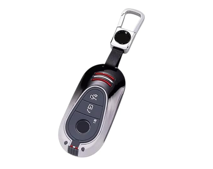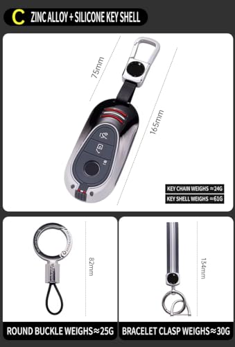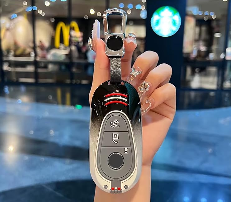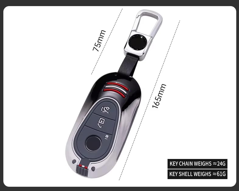 Generic - حافظة مفاتيح بسلسلة مفاتيح - غطاء معدني متوافق مع مرسيدس بنز الفئة اس 2021 (S400L / S450L / S500L) - تصميم حماية مفتاح ممتاز - اسود × ابيض معدني