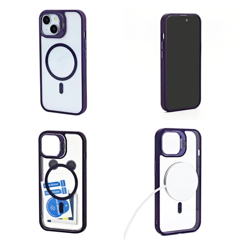 Keyihan - جراب مغناطيسي لموبايل آيفون 14 برو ماكس 6.7 بوصة + واقي لعدسة الكاميرا من كيهان متوافق مع ماج سيف شفاف حامل صلب وناعم مضاد للصدمات أرجواني