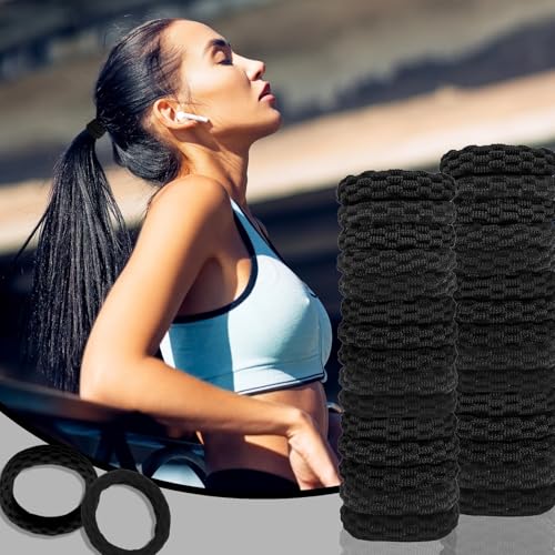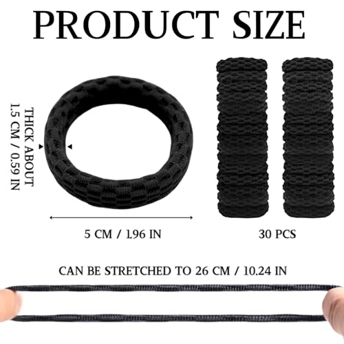 KEYRI - ربطات شعر مرنة من كيري، 30 قطعة من ربطات الشعر لتسريحة ذيل الحصان للنساء، ربطات شعر ناعمة لا تتجعد ولا تنزلق، رباط شعر للبنات بدون خياطة للشعر المجعد الكثيف، إكسسوارات شعر قوية (أسود)