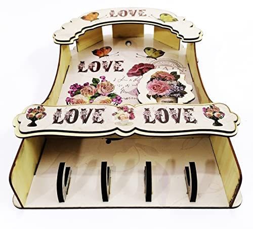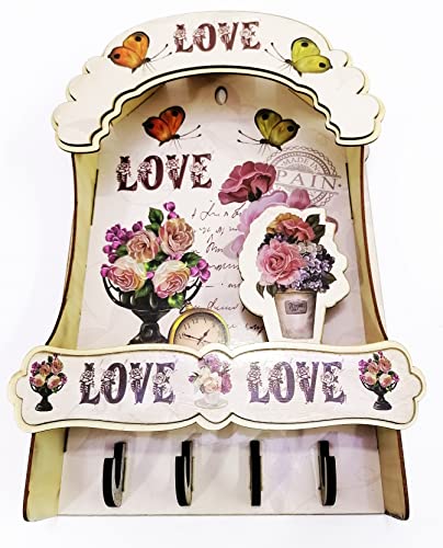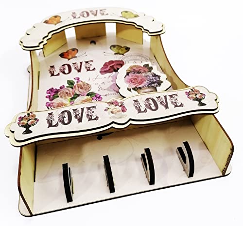 Generic - حلقة مفاتيح خشب بيضاء مطبوعة على شكل منزل تركي مع كلمة LOVE