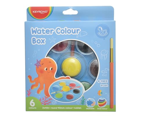 KEYROAD - باليت ألوان مائية من 6 ألوان مع فرشاة موديل KR972323، مجموعة ألوان مائية مدمجة وقابلة لإعادة الاستخدام للطلاب والفنانين، تتضمن فرشاة عالية الجودة لمزج مثالي من كي رود