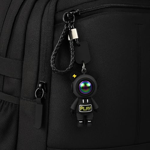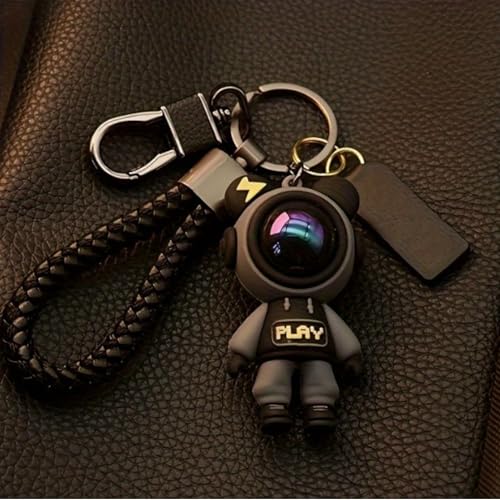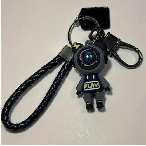 - تصميم فاخر: سلسلة مفاتيح أنيقة لشخصية رائد فضاء سوداء مع عدسة عين بألوان قوس قزح نابضة بالحياة وعرض نص "PLAY"، مثالية لإضافة شخصية إلى إكسسواراتك