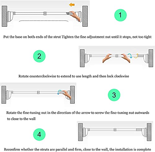 - تركيب سريع وسهل --- يُمكنك تركيب وفك قضيب الستائر الرائع هذا بسهولة بدون الحاجة لأي أدوات أو مسامير. يتلاءم بشكلٍ رائع مع كل من الأسطح الملساء والخشنة مثل الجدران المزينة بورق الجدران والبلاط والإطار الخشبي والجدار الزجاجي وما إلى ذلك.