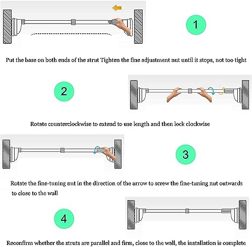 - تركيب سريع وسهل --- يُمكنك تركيب وفك قضيب الستائر الرائع هذا بسهولة بدون الحاجة لأي أدوات أو مسامير. يتلاءم بشكلٍ رائع مع كل من الأسطح الملساء والخشنة مثل الجدران المزينة بورق الجدران والبلاط والإطار الخشبي والجدار الزجاجي وما إلى ذلك.