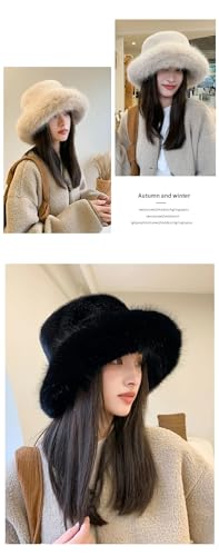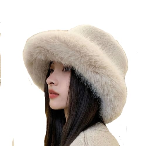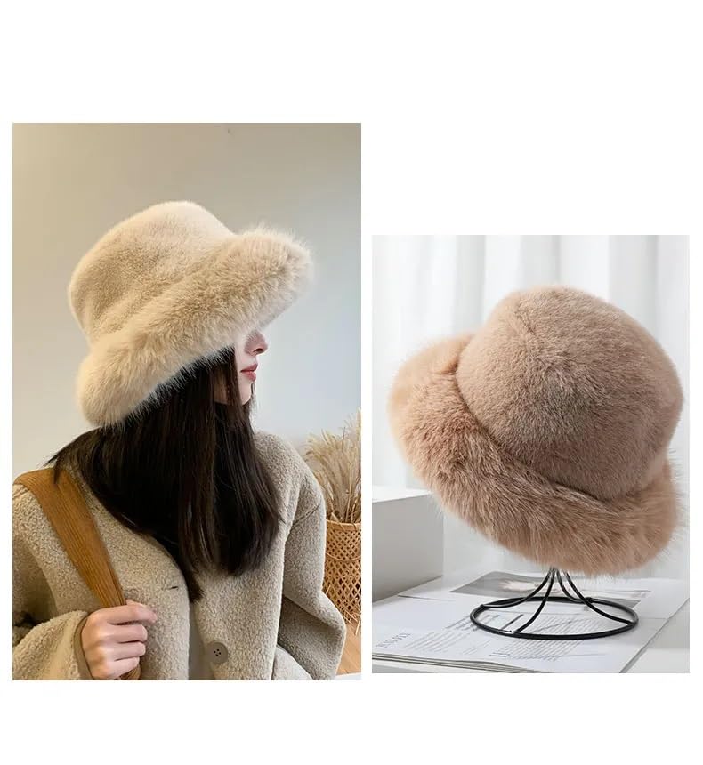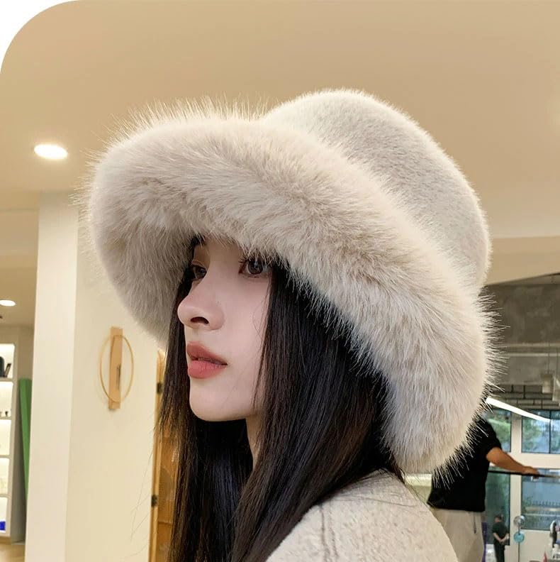 KGM Accessories - قبعة باكيت انيقة جديدة وكبيرة منفوشة من الفرو الصناعي الناعم من كيه جي ام اكسيسوريز - قبعات شتوية للنساء