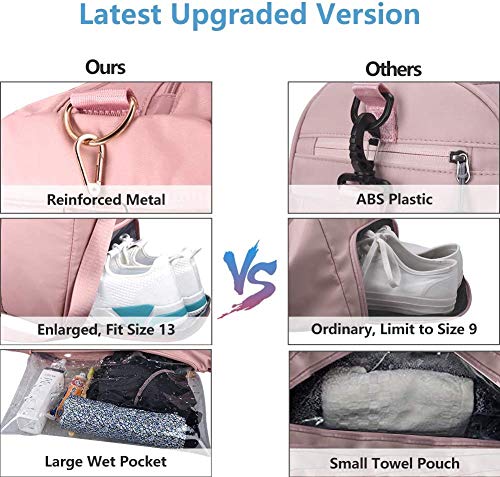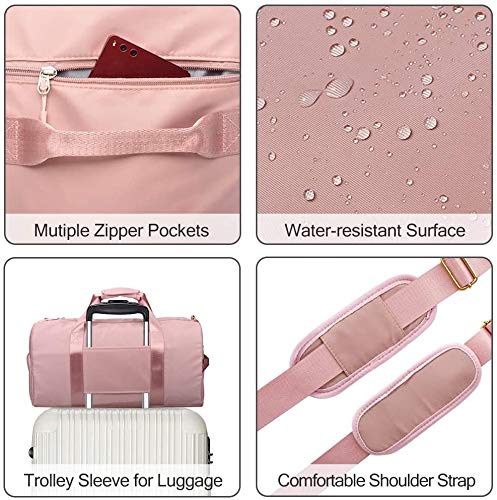 - نايلون خفيف الوزن مقاوم للماء: حقيبة الصالة الرياضية مصنوعة من نسيج النايلون المتين، سطح مقاوم للماء وبطانات مع تهوية جيدة. يسهل غسل حقائب الصالة الرياضية هذه خفيفة الوزن للغاية وسريعة الجفاف للنساء