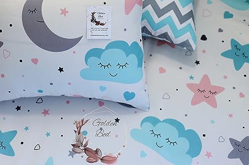 Generic - طقم ملايات سرير بأستك من القطن جولدن بيد خامة العامرية أطفال مكون قطعتين 100 2 × ملاءة مسطحة مقاس مزدوج 1 متر أو 1.20 متعدد الألوان منقوش