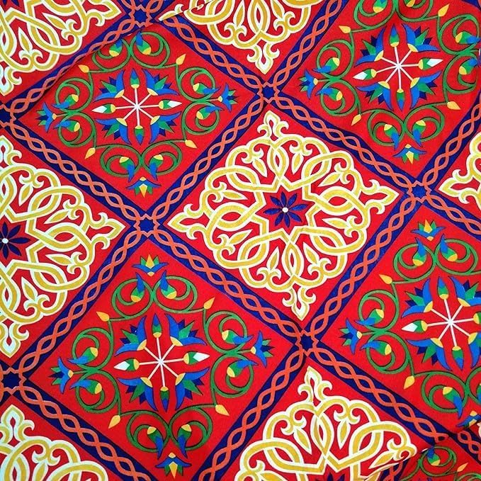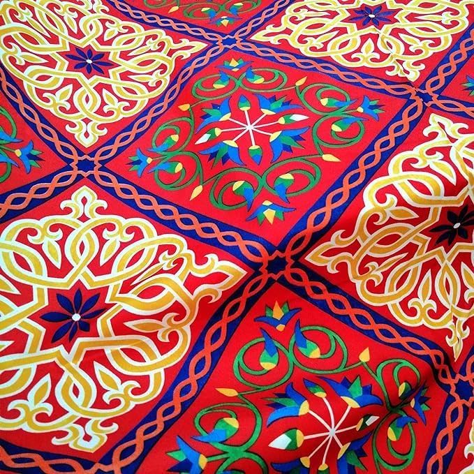 Generic - مفرش بطباعة خيامية بتصميم مربعات – مقاس 4 متر، يصلح لمفرش طاولة أو مخدات أو فانوس رمضان أو الديكورات الاحتفالية الموسمية