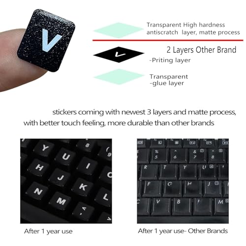 - 【استخدام يدوم طويلاً】: ملصقات الكيبورد العربية العالمية هي فكرة جيدة لتحديث الكيبورد الخاص بك بمفاتيح الحروف القديمة لمنحها مظهرًا جديدًا. تصميم من 3 طبقات، مادة مقاومة للتآكل، يمكن استخدامها لمدة 5 سنوات.