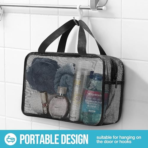 - 【وظائف متعددة الاستخدامات】: استخدم هذه الحقيبة الشبكية كحقيبة استحمام لصالة الألعاب الرياضية والسباحة والمنتجعات الصحية وأكثر من ذلك، أو كمنظم سفر لمستحضرات التجميل والمكياج ومستحضرات التجميل. يسمح تصميمها الشبكي الشفاف برؤية سريعة للمحتويات.