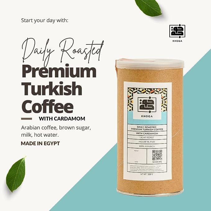 KHOGA - قهوة تركية فاخرة خفيفة مع الهيل من خوجة، 200 جرام، أرض