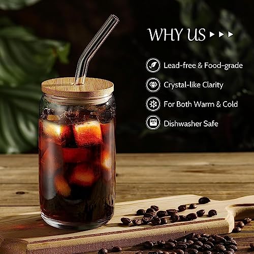 - 🍹مادة آمنة وصديقة للبيئة - مصنوع من زجاج بوروسيليكات والذي يمكنه تحمل درجات حرارة تصل إلى 170 درجة مئوية، كما أنه آمن للتنظيف في غسالة الأطباق وصديق للبيئة ومتين ويأتي مع غطاء من البامبو يحافظ تصميم الفم الفريد على رائحة مشروبك ويسمح لك بالاستمتاع بفقاعات البيرة أو الصودا بشكل فعال، كما يحافظ على نكهة مشروبك الأصلية إلى حد كبير.