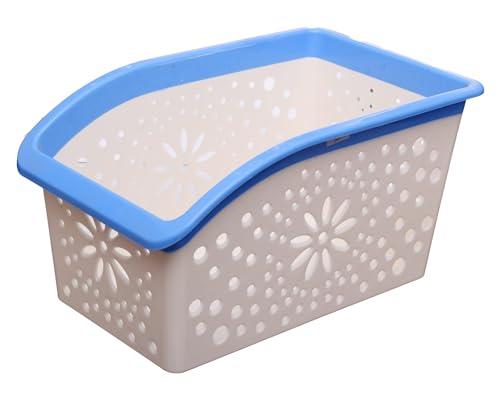 Khorshed For Plastic - سلة تخزين بلاستيك من خورشيد للبلاستيك بتصميم وردة مناسبة للثلاجة، 32 سم - أزرق فاتح