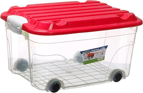 Generic - صندوق بلاستيك مونيكا ل سبلايز المدارس مزود بعجل من خورشيد ، 21 لتر - لون روز او احمر