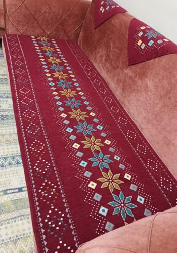 - طقم بياضات للكنب الركنة بنقشة ورد، 12 قطعة - بورجندي: غني وملكي، مما يضفي انطباعًا جريئًا على ديكورك.