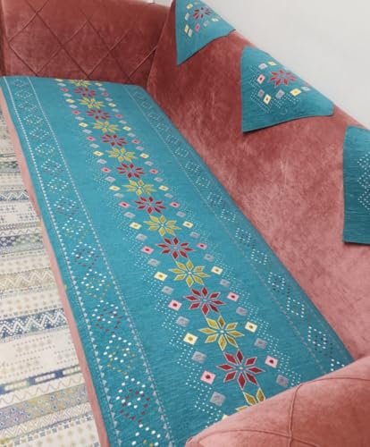 - طقم مفارش كنبة زاوية بنقش زهور، 12 قطعة - لون تركواز: تصميم منعش وحيوي، يضيف لمسة من الديكور إلى مساحتك.