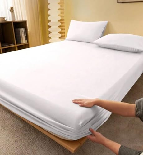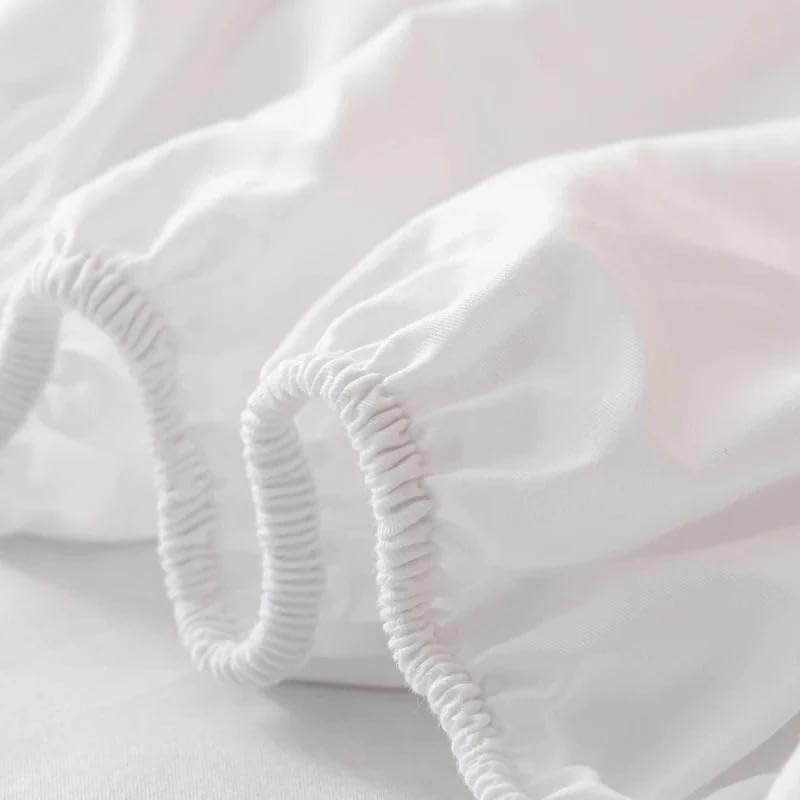khoyot - طقم ملاية استيك سادة قطن - 3 قطع (1 ملى - 1 مخدة - 1 خدادية) - مقاس (100cm*200*سم *30سم) - ابيض