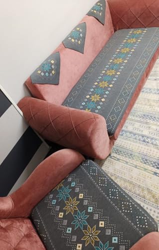- طقم كنبة من الكتان بنمط وردي، 10 قطع - رمادي: متين وسهل التنظيف، مثالي لمظهر عصري وبسيط.