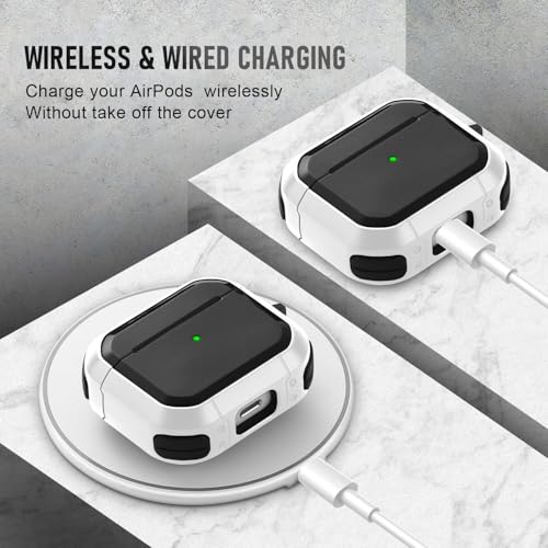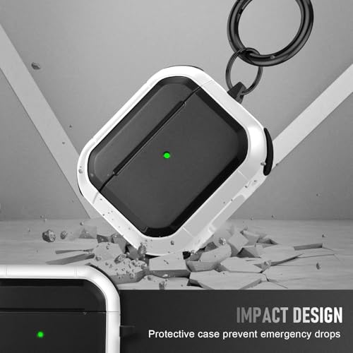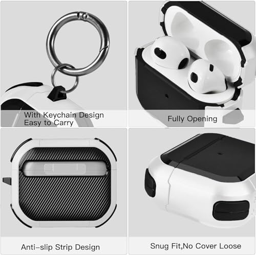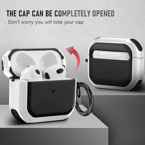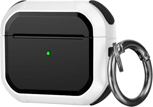 KHR - جراب حماية متين صلب بلون قشرة البيض مع سلسلة مفاتيح، متوافق مع سماعات ايربودز الجيل الثالث (2021) من كيه اتش ار (لون أبيض)