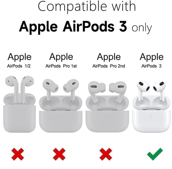 - متوافقة مع: الجراب متوافق مع سماعات ايربودز الجيل الثالث (2021)؛ سماعات الأذن وعلبة الشحن غير متضمنة في هذا السعر.