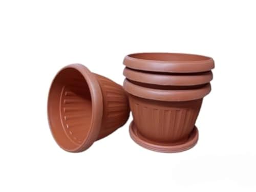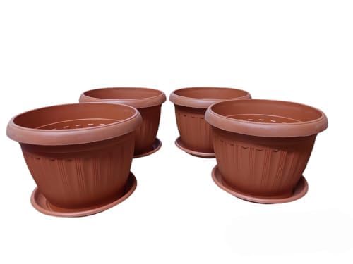 Generic - وعاء زراعة دائري موديل ألماني صناعة خورشيد -مقاس 20 سم - عدد 4 (طوبي)، خشب السنط