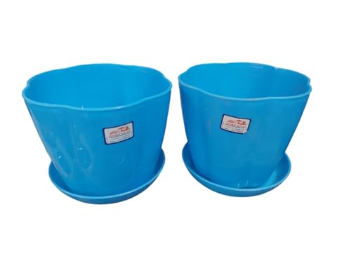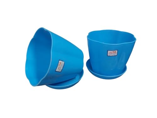 Generic - طقم إصيص زراعة مضلع مقاس 16 سم مع طبق من خورشيد - قطعتين (أزرق فاتح)، بولي ايثيلين (PE)