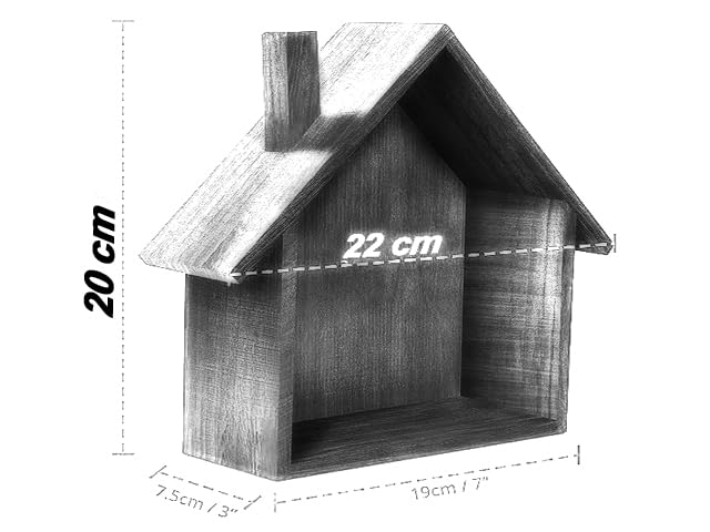khusubhdecor - ارفف عائمة للحائط من خشب الصنوبر من خشب الصنوبر بتصميم ريفي وصلب على شكل كوخ صغير بتصميم فريد لديكور الحائط مثالية لغرفة النوم والمعيشة والمطبخ من خوسب ديكور - 7×3×9 انش، رمادي