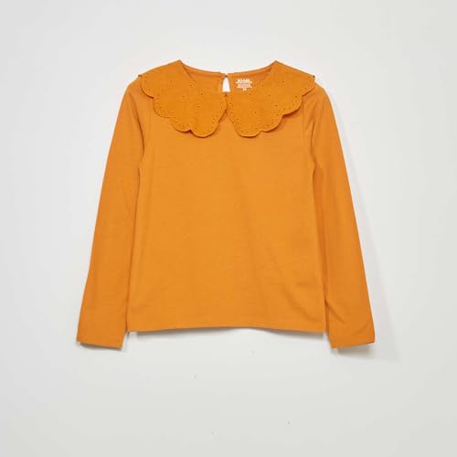 Kiabi - كيابي تيشرت باكمام طويلة مزين بتطريز انجليزي للبنات AJY85، اصفر