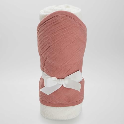 Kiabi - فوطة حمام من الشاش القطني بغطاء للرأس للجنسين من كيابي، مقاس واحد بلون بينك