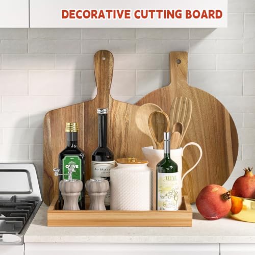 Kiasthome - ألواح تقطيع من خشب الأكاسيا للمطبخ بمقاس كبير 33 سم × 43 سم مع مقبض لبيتزا اللحوم ولتقديم المقبلات واللحوم الباردة بتصميم مزخرف لطاولة غرفة الطعام من كياستهوم، دائري
