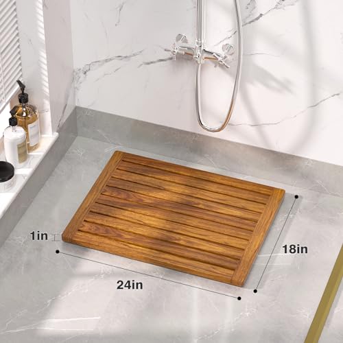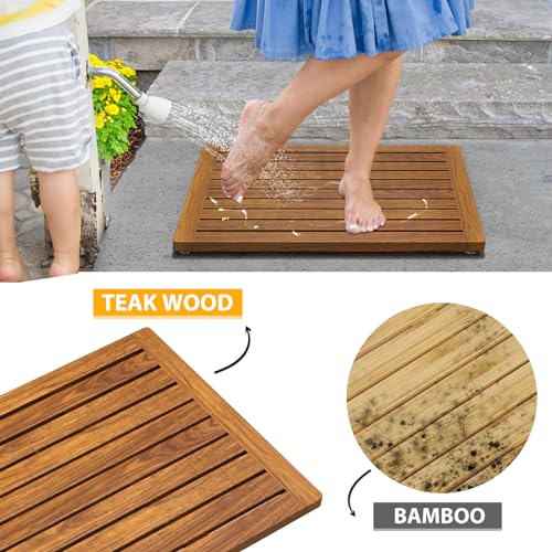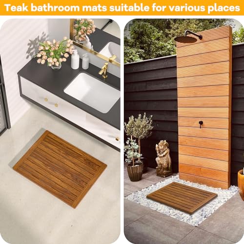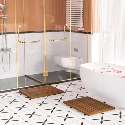 Kiasthome - سجادة حمام من خشب الساج من كياستهوم، مقاس 35.5سم × 45.7سم، سجادة حمام مضادة للانزلاق من خشبية للاستخدام الداخلي او الخارجي او السبا (مقاس M)