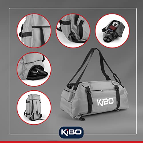 KIBO - شنطة رياضية كبيرة لصالة الالعاب الرياضية قابلة للتحويل الي ظهر مع جيب للاحذية وجيب رطب للسفر وصالة للرجال والنساء من كيبو رمادي البوليستر