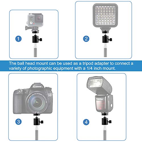 - محول الرأس الكروي للحامل ثلاثي القوائم وعصا السيلفي مصنوع من معدن قوي، وهو أكثر متانة وصغيرًا من الرأس الهزاز الشائع للحوامل الثلاثية، أصغر بكثير وأسهل في الحمل والاستخدام.