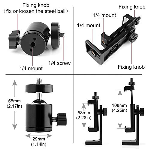 - حامل الموبايل ثلاثي القوائم ذو الرأس الكروي هذا هو محول عالمي يمكن تركيبه على أي حامل ثلاثي أو عصا سيلفي بمسمار 63.5 ملم ومناسب لأي معدات تصوير مع حامل 63.5 ملم مثل الكاميرا الرقمية خفيفة الوزن وكاميرا الفيديو وضوء الفلاش وكاميرا الحركة وما إلى ذلك. يمكن تدوير حامل الرأس الكروي 360° والتبديل بسهولة بين أوضاع التصوير الرأسية والأفقية للموبايل أو الكاميرا.