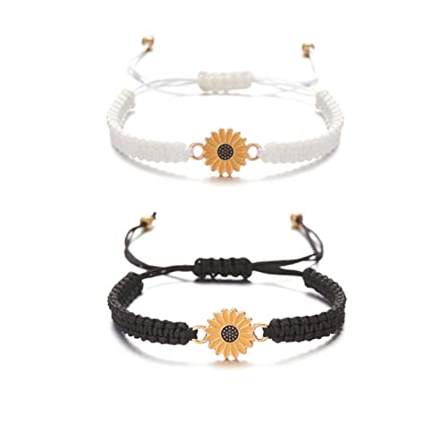 Kicomvi - اساور بتصميم زهرة عباد الشمس قابلة للتعديل بوهو ودلاية الاقحوان مصنوعة يدويا من حبل مضفر للصداقة وعد للازواج والنساء والفتيات والاصدقاء مجوهرات صيفية معدن