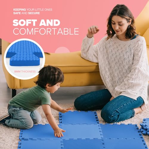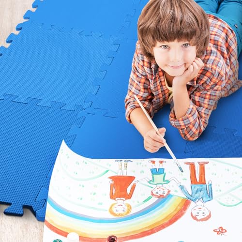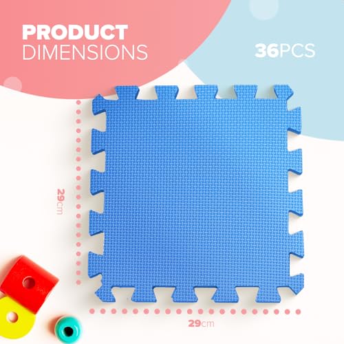kidoola - سجادة لعب للأطفال 29 × 29 سم مصنوعة من فوم ايفا السميك الناعم بنمط متشابك وهو فوم آمن ومريح للأطفال بسمك 7 ملم 36 قطعة من كيدولا، لون أزرق