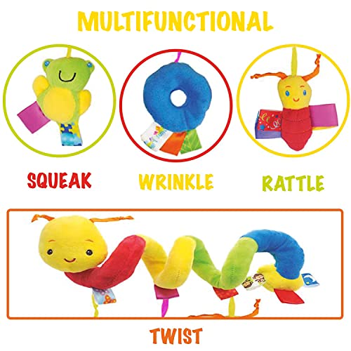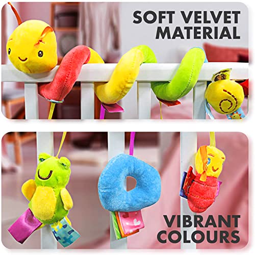 kidoola - لعبة حلزونية من كيدولا، مصنوعة من المخمل، مناسبة للجنسين من عمر 3 أشهر. تتميز بخشخيشات وتجاعيد قابلة للف والعصر. تساعد على تنمية التطور الحسي للأطفال.