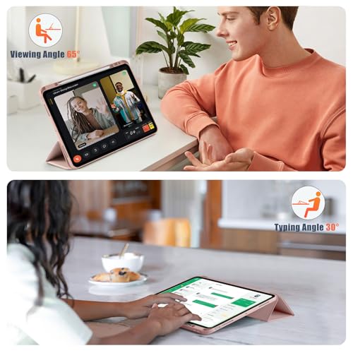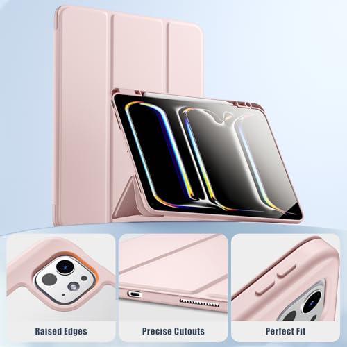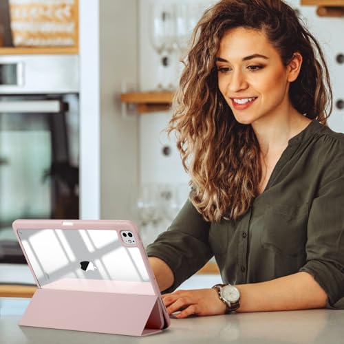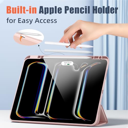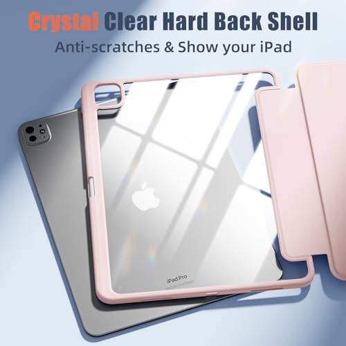 kidopire - جراب هايبرد لاي باد برو الجديد 13 بوصة 2024 (M4) مع حامل قلم مدمج وغلاف خلفي شفاف صلب، يدعم شحن قلم آبل برو وقلم آبل (USB-C)، مع خاصية التنبيه/السكون التلقائي، وردي