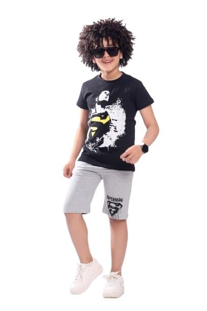 Generic - طقم اطفالي مكون من قطعتيين تيشرت نص كوم اسود وشورت رصاصي (6 سنيين)