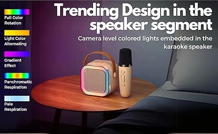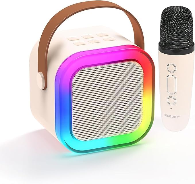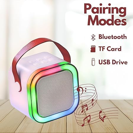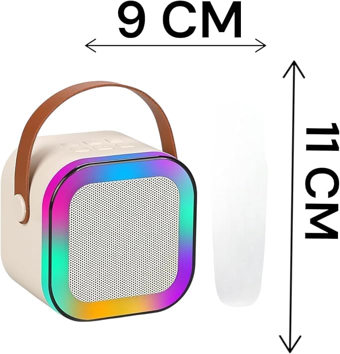 - استمتع بتجربة غنائية فريدة مع مكبر الصوت بلوتوث المحمول المصمم خصيصًا للأطفال والكبار. يأتي مع ميكروفون لاسلكي، مما يجعله الخيار المثالي لأي حفلة أو تجمع عائلي. يحتوي الجهاز على إضاءة ليد ملونة تضفي أجواء من المرح والإثارة، بالإضافة إلى ميزة تغيير الأصوات لإضفاء لمسات من الفكاهة والمرح أثناء الغناء.