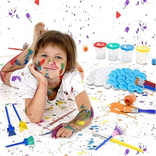Generic - مجموعة طلاء فنية للاطفال، 42 قطعة، فرش اسفنجية وفرش بنمط مع مريلة باكمام طويلة مقاومة للماء