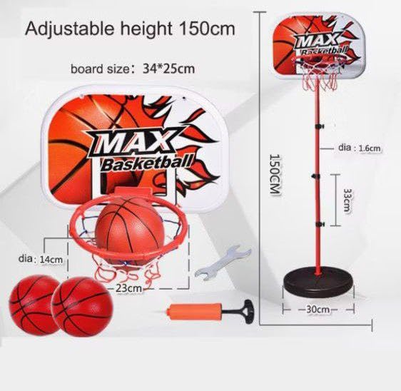 Generic - طوق كرة سلة للاطفال بطول 165 سم تقريبا، حامل بارتفاع قابل للتعديل ليناسب جميع الاعمار، قاعدة يمكن ملؤها بالماء او الرمل لتحقيق الثبات
