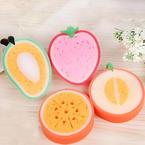 Generic - إسفنجة استحمام رغوية لطيفة وناعمة للأطفال على شكل فاكهة مصممة للاستحمام اللطيف وتنظيف فعال للأطباق (4 قطع)