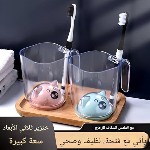 Generic - مج اسنان الحمام للاطفال - مجموعة جمع الأسنان الكرتونية الممتعة للأزواج، مثالية للاستخدام المنزلي، بتصميم وردي أنيق مع مقبض سهل الاستخدام لتنظيف وشطف سهل لجميع الأعمار متعدد الالوان